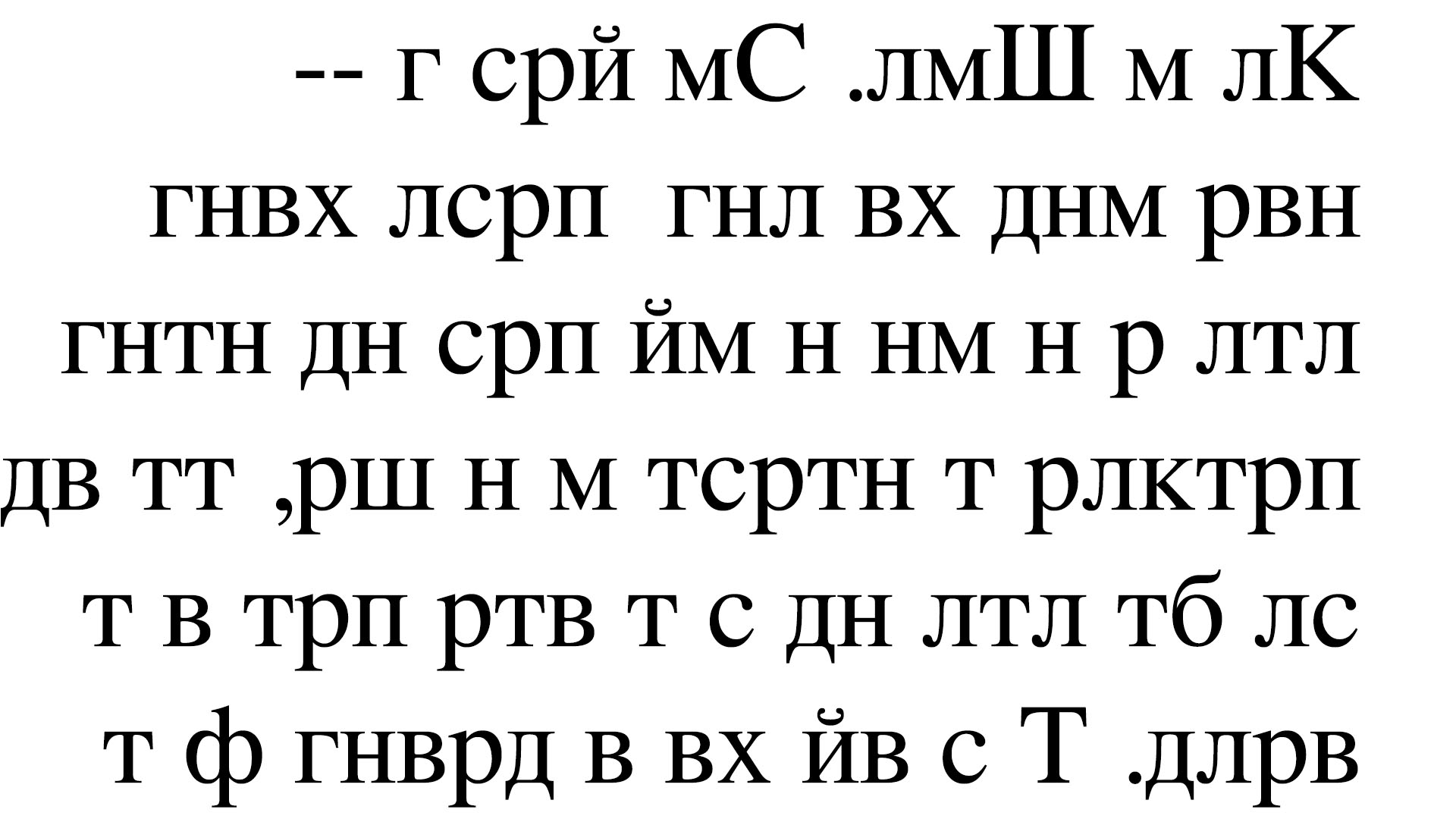 Of course, this slide is STILL in “easy mode” — it’s still the same alphabet as modern English, and keeps all the vowels. A better comparison would be this: